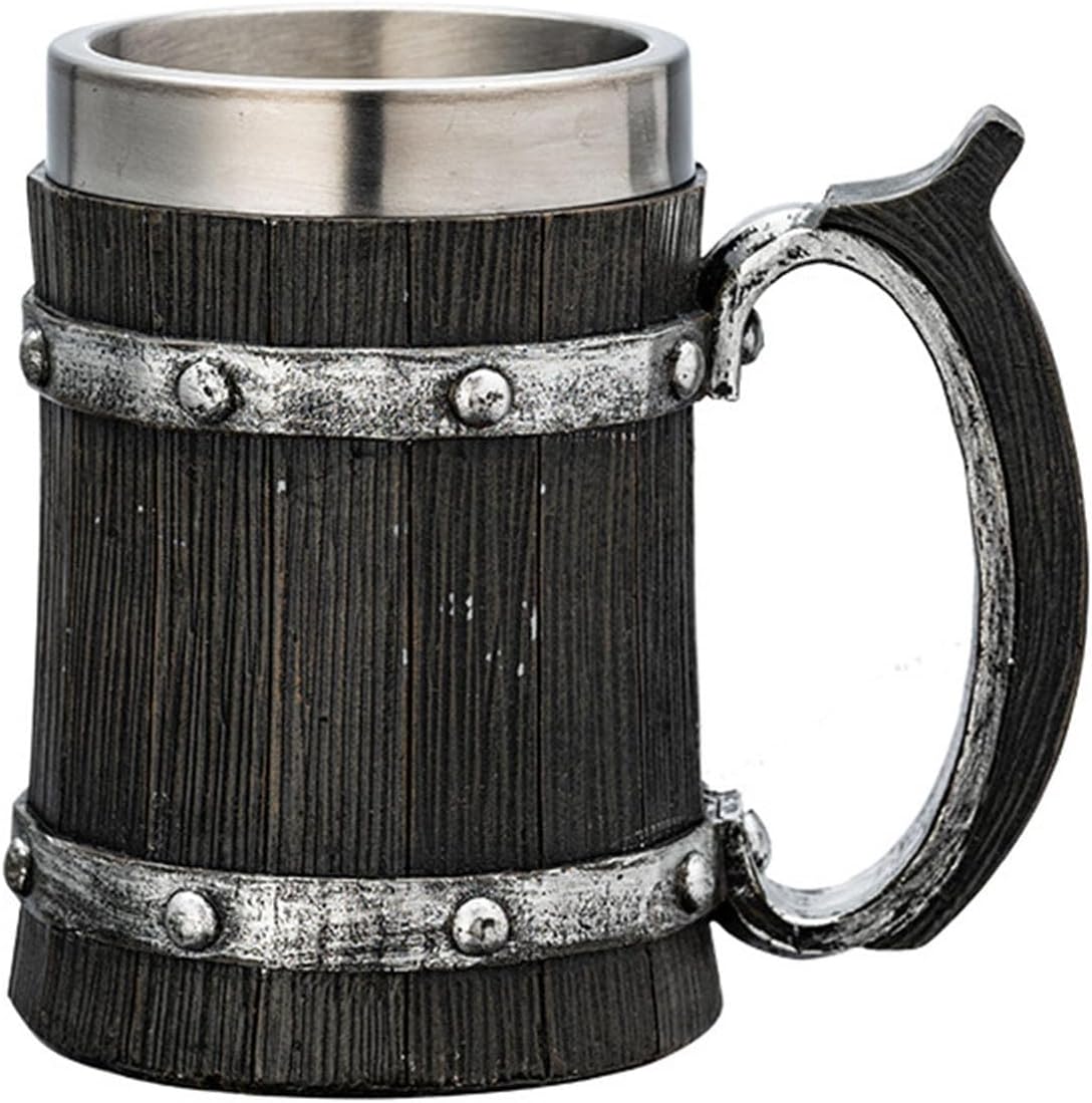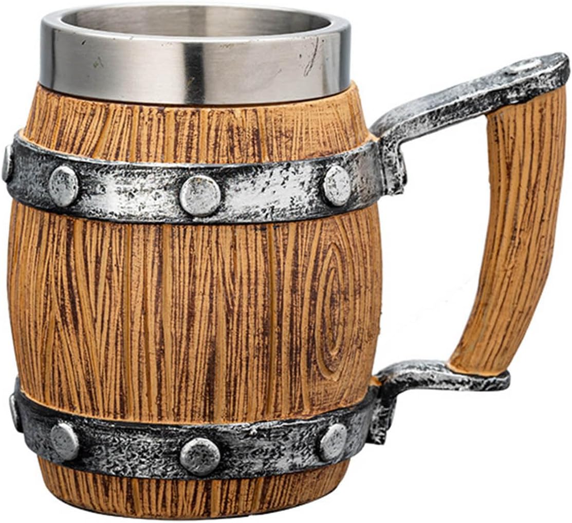 Thermal Retro Beer Cups with Woodgrain Finish, Nonrust Steel Resin-Reinforced Design for Camping EntertainingFeatures:Crafted with hand painted wooden look resin and retro design, this extra large 20oz beer mug features double walled stainless steel insulation to keep beverages cold for 6+ hours or hot for 3+ hours.The sturdy resin exterior mimics authentic wood grains texture while the food grade 304 stainless steel interior ensures and easy Perfect for vintage styles home collectors, outdoor enthusiasts, and hosts who appreciate unique drinkware for backyard parties or bucolic themed event.Its shatter construction withstands camping trips, poolside gatherings, and game day celebrations while maintaining optimal beverage temperature in any weather.The ergonomic handle and wide base provide secure grips stability during lively social event, making it ideal for craft beer lovers seeking both retro aesthetics and modern functionality in sturdy barwares.Specifications:Materials: Resin, Stainless SteelType: 10 Types Optional, Please Refer to Pictures to SelectSize:As Shown in the PicturePackage Includes:1Pc Imitation Wood Retro Resin Stainless Steel Beer MugNote:Please allow 1-2cm error due to manual measurement. Please make sure you do not mind before you bid.Due to the differences between different monitors, the picture may not reflect the actual color. Thanks!